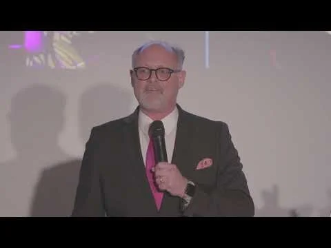 Television golf analyst and golf author Gary McCord joins fundraising auctioneer Greg Quiroga onstage to help "sell" his lot during the 2012 Schulz Celebrity Golf Classic.